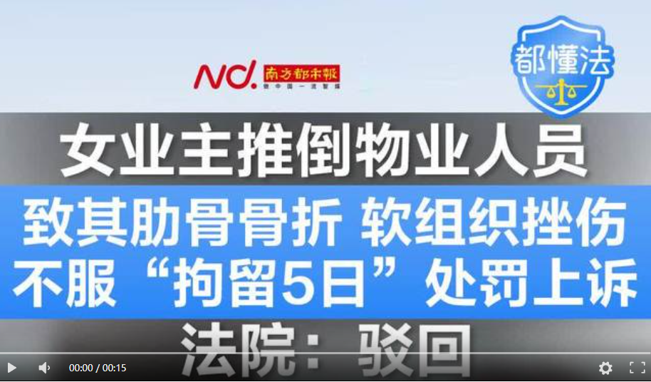 业主和物业人员短暂交流后发生口角,并发展为肢体冲突。其间,钟某将物业人员吴某推倒在地,吴某后倒过程中还带倒了另一名物业人员。