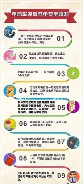 《高层民用建筑消防安全管理规定 》第三章第三十七条规定:禁止在高层民用建筑公共门厅、疏散走道、楼梯间、安全出口停放电动自行车或者为电动自行车充电。违反此规定的,由消防救援机构责令改正,对非经营性单位和个人处500元以上1000元以下罚款。
