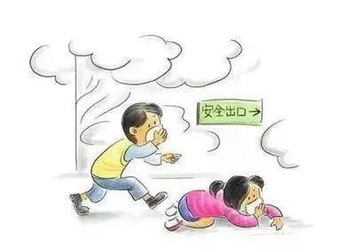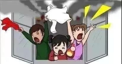 火灾中必须穿过浓烟逃生时,尽量用浸湿的衣物保护头部和身体,用湿毛巾捂住口鼻,弯腰低姿前行。