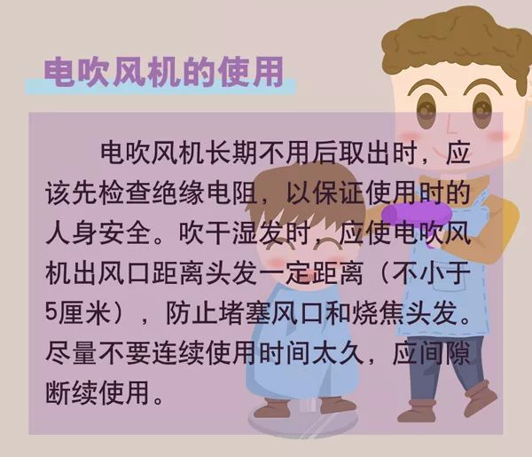 使用电吹风、电流梳等电器时,用后立即拔掉电源插头,以免遗忘而引起事故。
