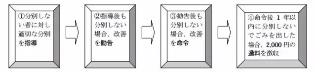 再比如说横滨市,如果你多次分错垃圾,那么规定在通过指导——劝告——命令之后还屡教不改的,将处以2000日元的罚金。