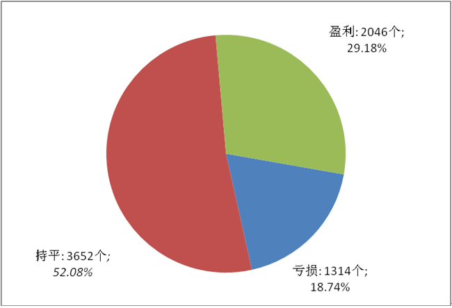 (三)企业经营与效益情况 随着物业服务企业多种经营和特约服务、顾问服务、前期介入服务等业务的开展,物业服务企业物业服务收入占比较往年有所降低,物业服务企业收入实现多渠道,防范风险能力进一步提升。经过近十年的宣传,业主主动交费意识明显提高,业主不交或者拖欠物业服务费情况有所改观。从统计上报经营数据的企业来看,按照年度经营业绩,盈利的有2046个,占比29.2%;持平的有3652个,占比52.1%;处于亏损状态的有1314个,占比18.7%(图4)。总体来说,物业服务企业盈利水平有所提高,物业服务企业亏损数量进一步降低。