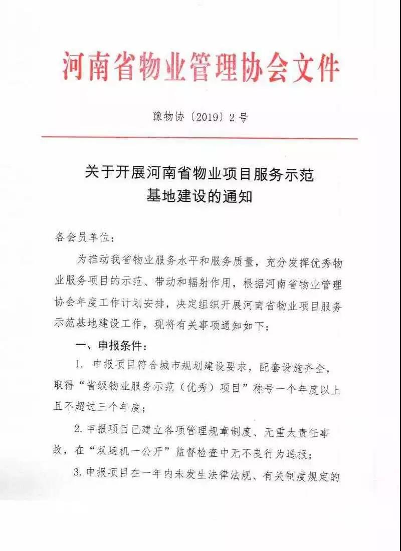 示范 | 关于开展河南省物业服务示范基地建设的通知