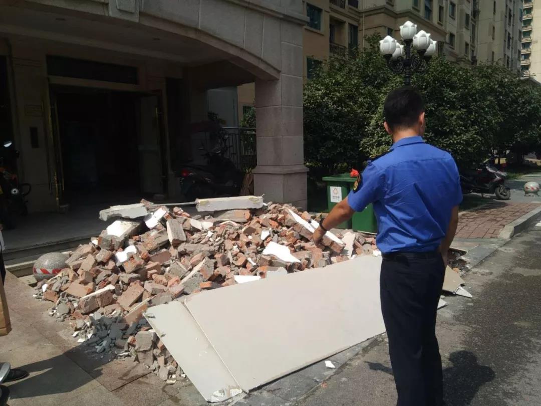 小区某户业主房子正在装修,每天都有不少垃圾需要清理。为了自己方便,将建筑垃圾随意丢弃在了大门外的过道上。