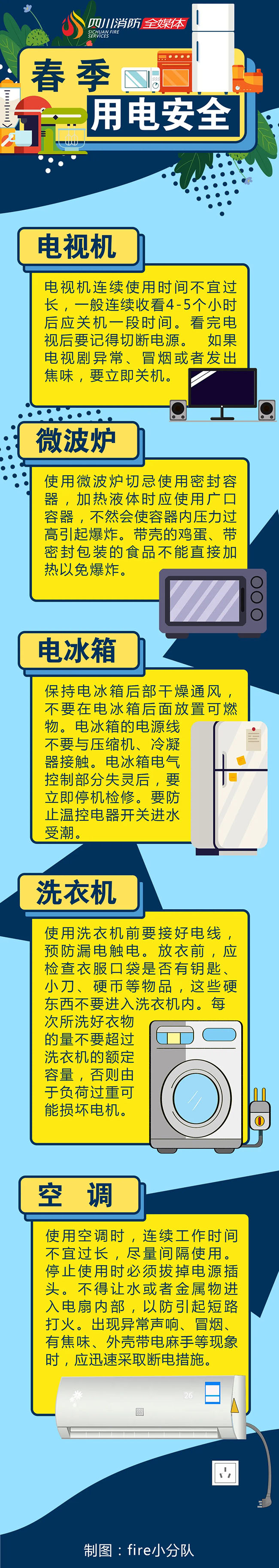 03 进入春季风干物燥,发热电器连续使用时间不可过长,避免引发火灾。家庭用电注意安全,防止用电过热引发电气火灾。