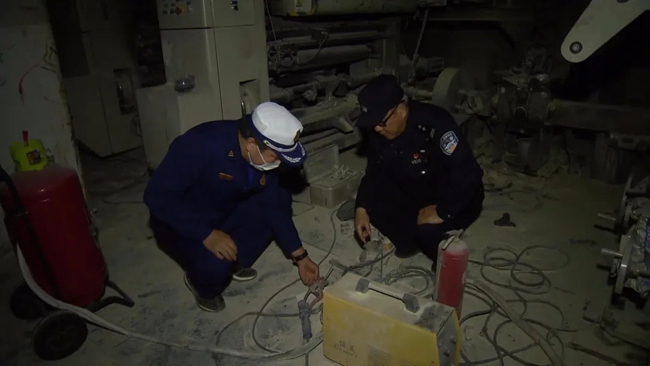 消防部门随即开展火灾原因调查,通过生产车间的监控发现,起火前,有人在一台机器前有动火的行为,几轮火光冒出后,火势开始失控。为进一步调查原因,消防人员进入起火现场,看到这台机器前放着一台电焊机,上边还嵌着半根焊条,电线有老化迹象。而周边就是易燃液体。