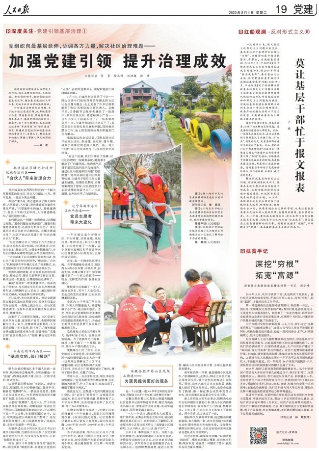 推进国家治理体系和治理能力现代化,社区治理只能加强、不能削弱。加强党的领导,推动党组织向最基层延伸,健全基层党组织工作体系,是城乡社区治理的坚强保证。 针对基层治理的突出问题,不少地方通过党建引领,统筹凝聚各方力量,围着基层想、围着基层转、围着基层干,基层党组织的组织力、凝聚力、战斗力不断增强,基层治理从过去的“单兵作战”向“协同善治”转变,街道社区党组织加强基层治理的资源多了、力量足了,群众生活中的操心事烦心事揪心事及时得到了解决。 北京海淀区曙光街道世纪城西区社区 “合伙人”带来治理合力 世纪城是北京西四环附近的一个超大型高密度的住宅区,常住人口超过10万。停车乱象,一度成为突出问题。 车位严重不足,周边道路成了露天停车场,占用盲道、人行道、消防通道等违章停车情况严重。“只要能停车的地儿,都被塞满了,甚至十字路口正中间、人行横道都是车。”居民抱怨不断。 如何解决这一问题?单靠物业,协调能力有限。“复杂问题往往牵涉面广,既要有较强的协调能力,还得多方形成合力。”世纪城西区社区党委书记唐洁说。在曙光街道支持下,社区开始试点党建引领“社区治理合伙人”机制。 “社区治理合伙人”团结了六个方面主体,社区党组织居中协调,社区居委会、社区全体业主、物业服务企业、上级业务职能部门、参与社区服务保障的其他社会单位共同参与。 “六方涵盖了社区治理所需的参与者,核心在于基层党组织的领导。”唐洁说,“合伙人”机制将原有平行模式变成了锥形模式,社区党组织作为主负责者来沟通协调各方。 发挥机制的效能,社区党委多次组织居委会、物业服务企业、居民代表等多方商讨方案,最终达成一致意见,治理的路径也清晰了。 解决“乱停车”,首先恢复秩序。路面划定了停车位,为无固定车位的业主办理优惠停车证;对两辆车以上的业主,通过错时停车方式解决,实施差异化停车收费。 不让乱停,车位供给要足。世纪金源国际公寓小区是社区所辖小区,部分车位是公司办公使用,一到晚上就会空出。在社区党委协调下,这些车位提供给辖区居民夜间使用,错峰停车。 政策有了,还要居民知晓。社区党委又组织多方力量,逐家挨户宣传,希望得到理解与支持。如今,治理效果逐渐显现,不少居民感慨:“车不乱停,路不堵了。”曙光街道办事处副主任夏卓姝介绍,街道将推广党建引领“社区治理合伙人”机制,解决社区中的难题。 云南昆明市西山区 “基层吹哨,部门报到” 驱车沿着昆明城区主干道人民路一直向西,快到城市边缘地带,会突然邂逅一片“洼地”:四周是高楼大厦,但这一片楼宇老旧,红砖房多。 这里便是昆明电池厂生活区。走进生活区,楼虽旧,但小区柳绿花红,整洁干净,崭新的“歇脚亭”内,一群银发老党员、老职工正在读报分享。70多岁的党员武世光戴着扩音器,正在给大家读报。 从前的“歇脚亭”,是用木头、竹子和废弃板材搭的简易棚。昆明电池厂生活区位于西山区马街街道马街北路社区,社区面积不足一平方公里,有老旧家属区28个。“过去,垃圾废品把公共厕所的门都堵了,花坛里到处搭棚子,树上挂满塑料袋。”说起从前,老住户张丽萍一声叹息。 张丽萍过去没少向社区党总支书记白建伟反映问题,白建伟也很无奈:“也想发挥基层党组织作用,但没钱没权难组织,只好‘修修补补过日子’。” 转变,源于今年昆明市推行的“基层吹哨,部门报到”制度改革,街道社区党组织“点菜”,由相关党委牵头,调配职能部门共同解决问题。 3月4日,白建伟到区里开了个会——西山区委专门组织召开的马街北路社区社会治理专题会,会上见到了许多区级职能部门和公共单位的主要负责人。会刚开始,区委副书记陈净先就放了一组图片:多年垃圾沉积、楼道贴满小广告……台下不少人开始坐不住了。一场务实的会开下来,白建伟知道自己怎么干了:基层党组织负责收集民意和问题,同时做好群众工作,由上级党组织统筹各职能部门合力解决。 也就是这次会议以后,马街北路社区开始发生变化,拆违建、固危房、建车棚,诸多公共单位的老房子焕然一新。对于“弃管”或无力改造的房子,政府投资兜底改造。 “有这个机制,我们干事有了保障,对社区治理的一些疑难杂症,就能着手解决了!”白建伟说。他的底气来自于基层党组织组织力的提升,通过社区与驻地单位共建“党建联盟”、党员回居住地社区报到等机制,白建伟手里的工作力量越来越强。疫情防控期间,治理效果得到了显现,社区的党员们主动请缨轮流值守大门,“小区虽旧,也井然有序。”白建伟说。 辽宁阜新市海州区和平街道 党员志愿者 带来大变化 一年多前还是个弃管小区,下水堵塞、垃圾遍地、花坛种菜、草坪种瓜;如今环境优美,小区房价涨了一大截。辽宁阜新市海州区和平街道华兴社区橡胶园小区的变化,让居民感受很深。 改变,是一支物业队伍带来的。和平街道地处老城区,辖区内2/3的小区弃管,市场失灵、自治失效,治理从哪下手?和平街道找到了一个有力的抓手——物业,发挥党员作用,服务社区居民。 橡胶园小区组建了一支9人的物业队伍,其中7人是党员。正是这些党员志愿者,让社区治理重回正轨。 小区内14个单元门年久失修,外来人员随意出入,楼道贴满了小广告,居民颇有怨言。为此,