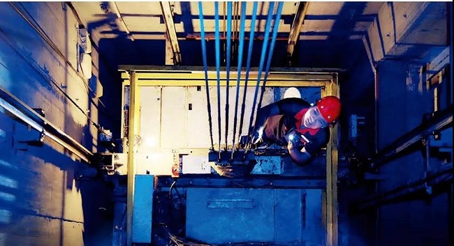 物业人员检查电梯通风口
