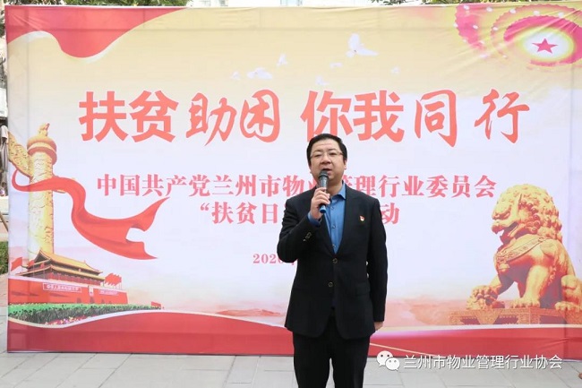 活动上,中共兰州市物业管理行业党委书记张勇发表了热情洋溢的讲话,他提到“国家扶贫日”进行精准扶贫活动充分体现了党中央、国务院对于扶贫开发构成的高度重视,也充分体现了兰州市物业行业对于主城四区贫困群众的格外关心,所以我们的每一个活动都是对达成消除贫困这个终极目标的举措。