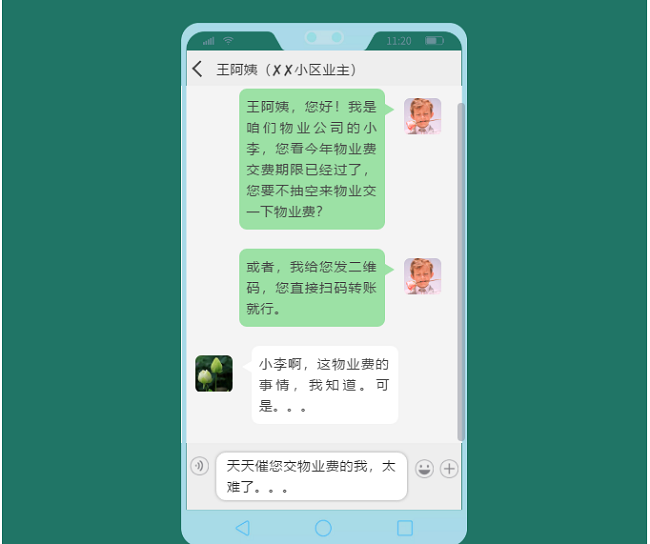 王阿姨收到微信,心里犯起了嘀咕,今年发生了几档子事,她在犹豫这物业费交还是不交?