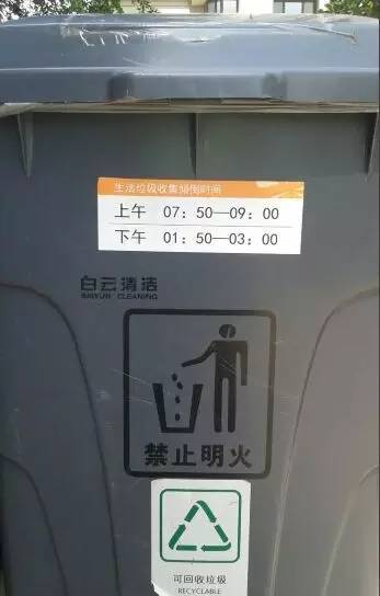 垃圾桶改处粘贴垃圾处理时间提示。
