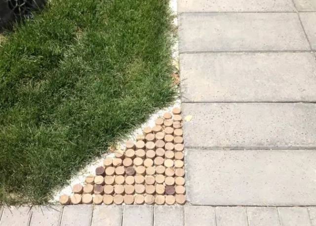 绿化区域高于路面,使用小木桩装饰,及防止泥水流向道路,又美化环境。