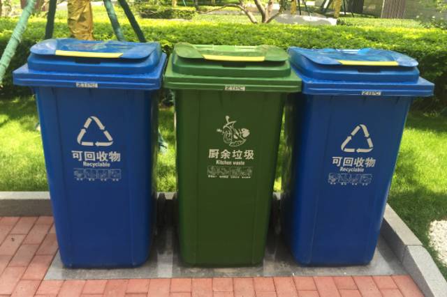 垃圾桶分类管理,数量满足入住业主 ;地面硬化。