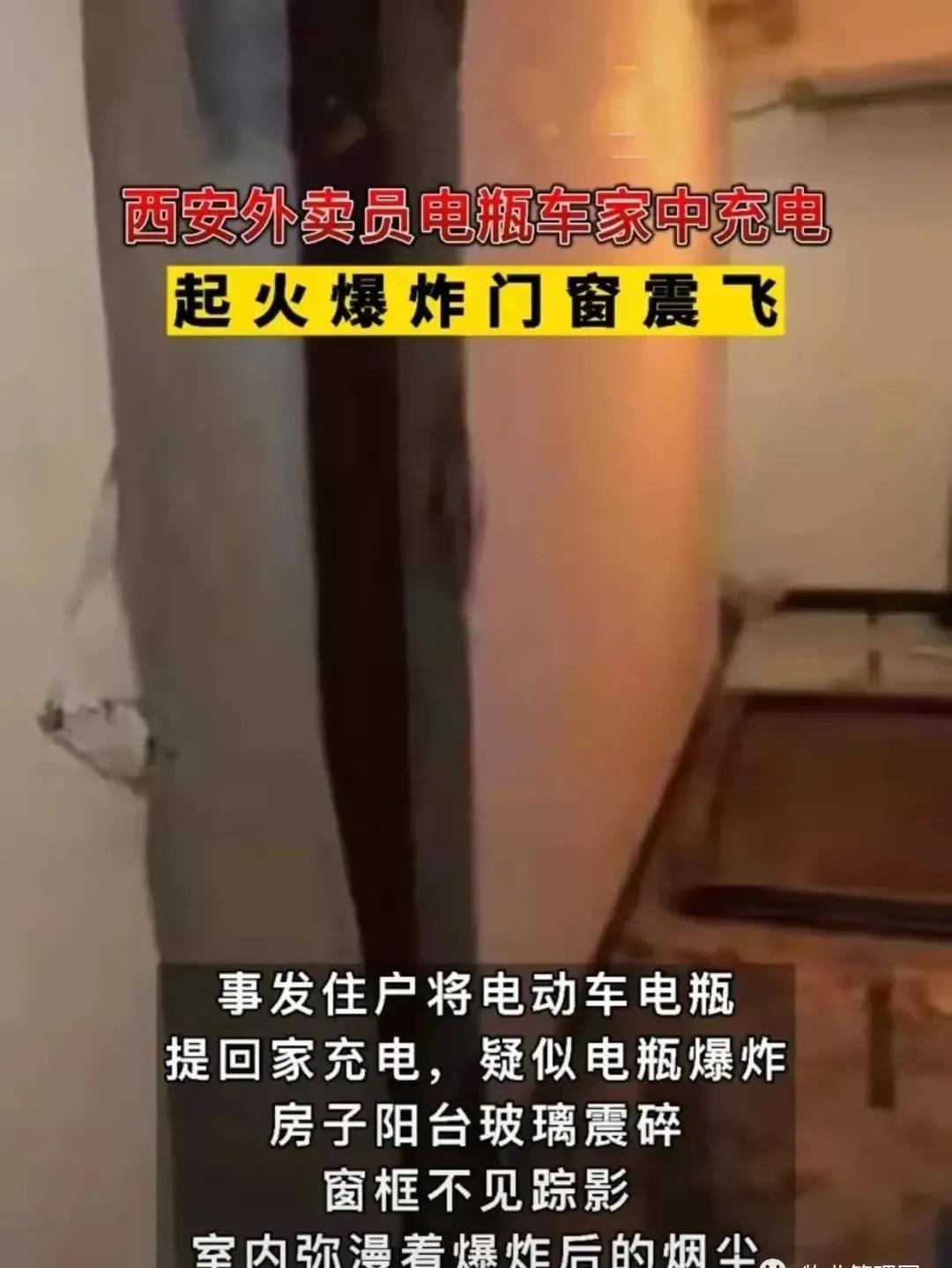 近日,西安朱雀云天一小区住户将电动车电瓶带回家充电,温度过高冲击波震飞门窗,屋内1人手臂烫伤。