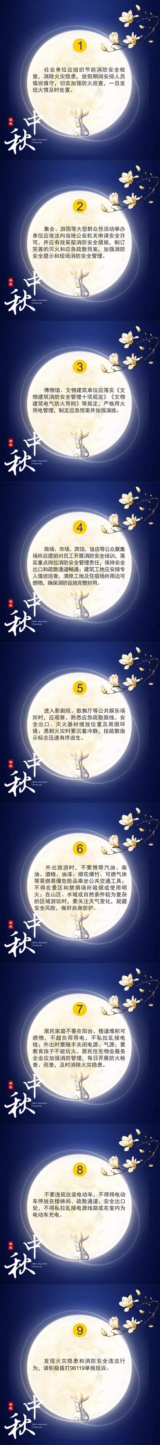 中秋节、国庆节即将来临,庆祝活动及商业庆典、促销活动多,公共场所人员聚集,火灾风险加大。应急管理部消防救援局发布消防安全提示,提醒广大群众节日期间注意消防安全。